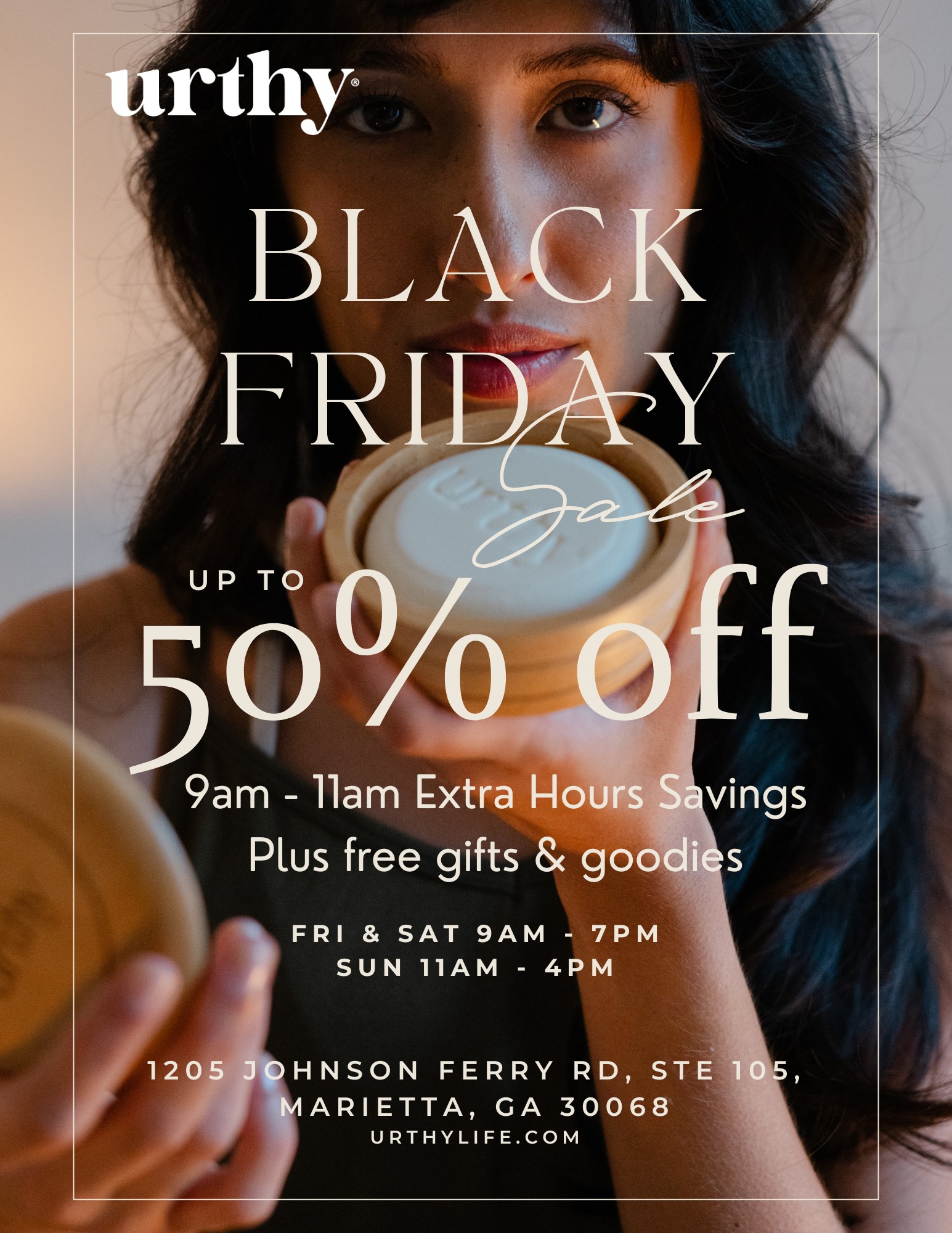 From Friday, Nov. 28 through Sunday, Nov. 30, shoppers can enjoy 25% off the entire store, plus up to 50% off select items during Urthy’s early-bird Extra Hours Savings from 9–11 a.m. on Friday and Saturday. Extended hours make it easy to shop all weekend long: 9 a.m.–7 p.m. on Friday and Saturday, and 11 a.m.–4 p.m. on Sunday.